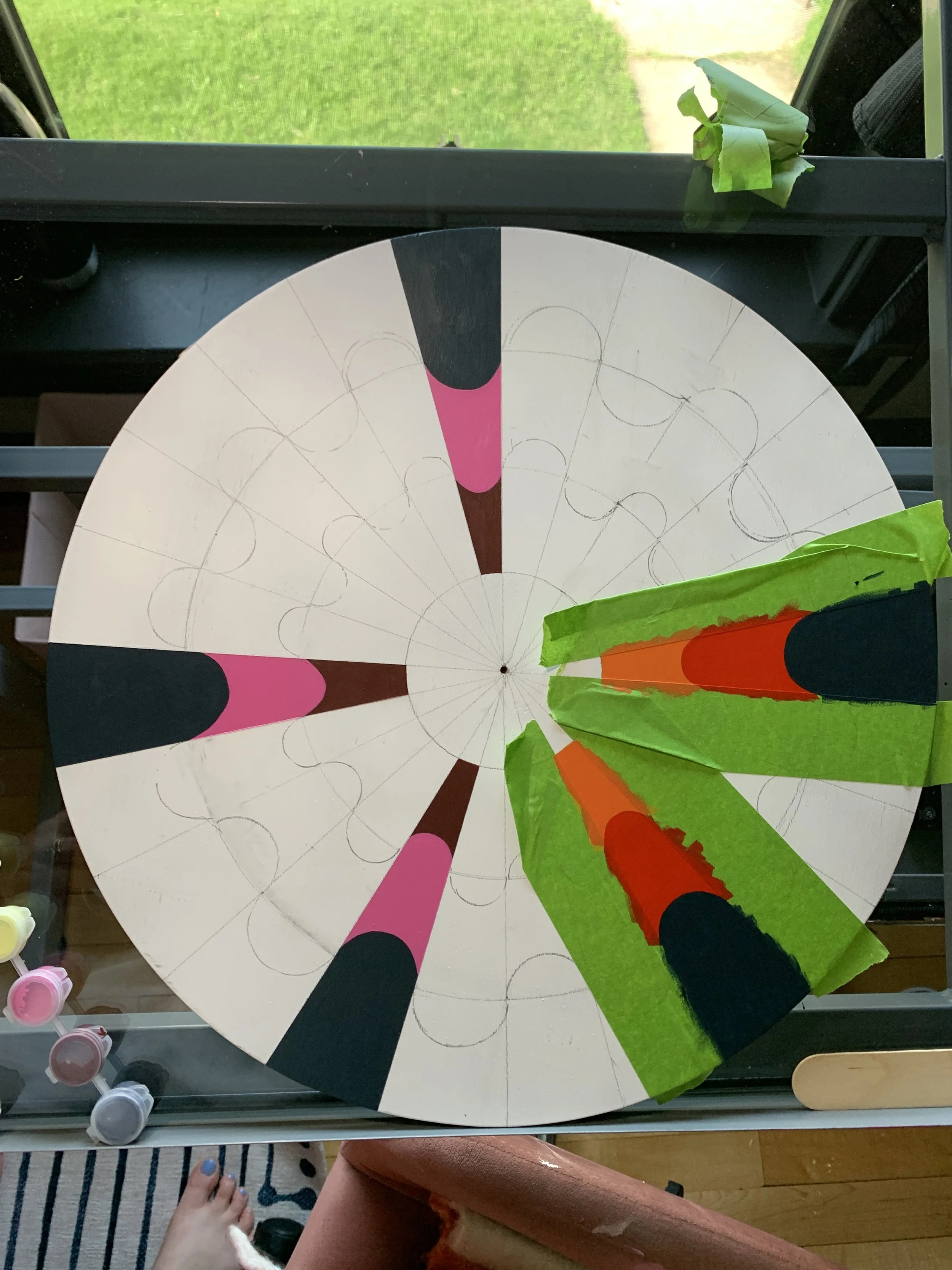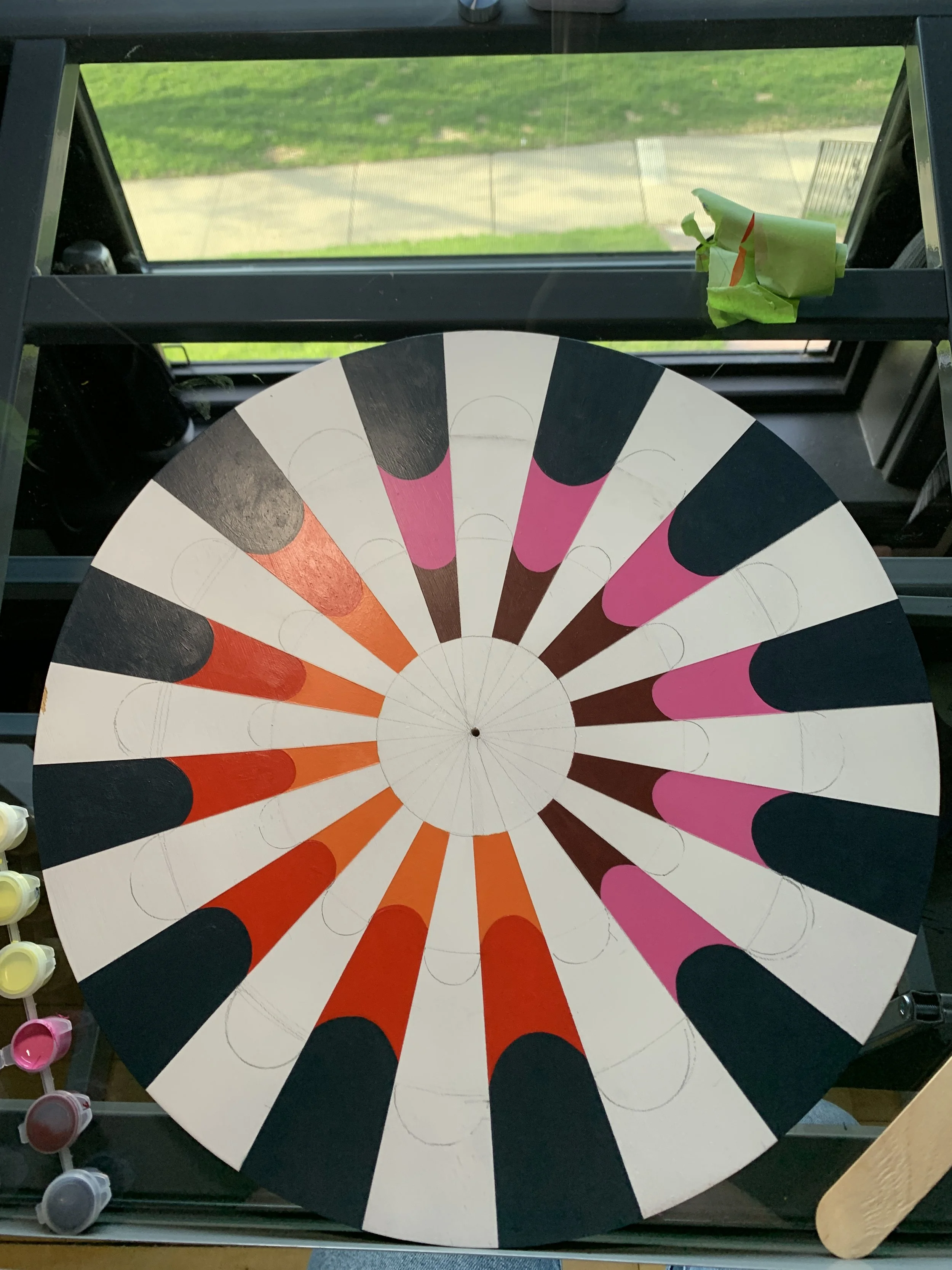 I transformed an old charcuterie board into a rainbow, hypnotizing wall clock.